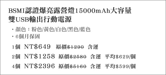 ![]() 防絨加密100%純棉枕套/防絨100%純棉羽絨柔絲枕 售價:169 我要購買 防絨加密100%純棉枕套/防絨100%純棉羽絨柔絲枕-新研發!纖維枕不夠看,快升級純棉防絨加密的羽絨枕系列!水洗防菌,蓬鬆透氣,享受整晚舒適好眠!只要169元起(含運)即可購得原價最高2700元可水洗 | ![]() 卡路里無繩跳繩器 售價:250 我要購買 卡路里無繩跳繩器-包包裡藏著瘦身武器!無繩跳繩器更有效消耗卡路里,沒有線體牽絆好收納,室內室外都可用!運動減重的好選擇平均每入最低只要250元起(含運)即可購得卡路里無繩跳繩器1入/2入/4入,顏色: | ![]() 瑪琪朵義式廚房-雙人經典主廚推薦套餐 售價:299 我要購買 瑪琪朵義式廚房-雙人經典主廚推薦套餐-大展專業義麵的多層次風味!超人氣經典美食,豐富多元的義式創意,伴隨美樂演奏,以十足份量擄獲味蕾只要299元(雙人價)即可享有【瑪琪朵義式廚房】原價572元雙人經典 |